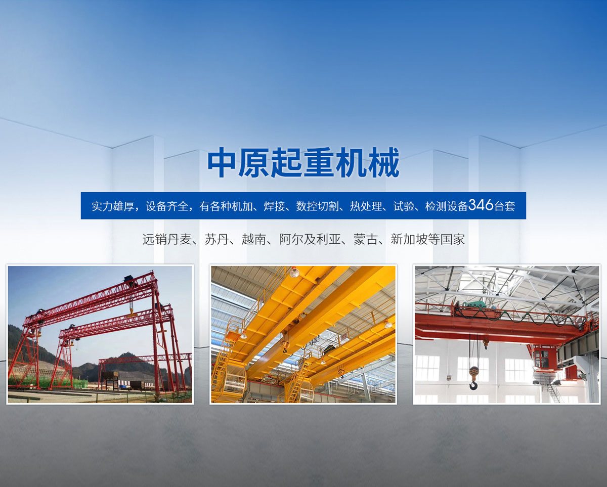 新鄉(xiāng)市中原起重機(jī)械有限公司成立于2000年,地處中原,輻射全國28個(gè)省市自治區(qū),設(shè)外埠經(jīng)銷處、辦事處268個(gè)。產(chǎn)品行銷工礦、建材、化工、冶金、電力、交通、鐵路、油田、港口等各個(gè)行業(yè)。遠(yuǎn)銷丹麥、蘇丹、越南、阿爾及利亞、蒙古、新加坡等國家。  公司實(shí)力雄厚,設(shè)備齊全,有各種機(jī)加、焊接、數(shù)控切割、熱處理、試驗(yàn)、檢測設(shè)備7臺;有機(jī)加工、熱處理、單、雙梁橋門機(jī)生產(chǎn)、檢測、安裝等9個(gè)車間,研究中心、運(yùn)輸公司、安裝維修服務(wù)公司等機(jī)構(gòu),?  主要產(chǎn)品有:LD型1~20噸電動單梁起重機(jī)系列產(chǎn)品;5~600噸通用橋式、門式、冶金、上旋轉(zhuǎn)下旋轉(zhuǎn)電磁吊、絕緣、抓斗、防爆起重機(jī)系列產(chǎn)品;LH3~100噸葫蘆雙梁系列產(chǎn)品;MH5~32噸葫蘆門式系列產(chǎn)品;0.5~40噸CD1、MD1鋼絲繩電葫蘆系列產(chǎn)品;HS1型0.5~20噸手動葫蘆系列產(chǎn)品;0.5~10噸環(huán)鏈電動葫蘆系列;0.5~40噸彎道電動葫蘆系列產(chǎn)品;裝卸橋、造船門機(jī)、架橋機(jī)、鑄造吊和水電大噸位起重機(jī)系列產(chǎn)品。  公司建立了強(qiáng)有力的質(zhì)量保證體系和生產(chǎn)過程的質(zhì)量控制系統(tǒng),嚴(yán)格執(zhí)行國家設(shè)計(jì)、生產(chǎn)標(biāo)準(zhǔn),有嚴(yán)格的生產(chǎn)工藝過程和標(biāo)準(zhǔn),嚴(yán)格的檢驗(yàn)、檢測標(biāo)準(zhǔn)和手段。